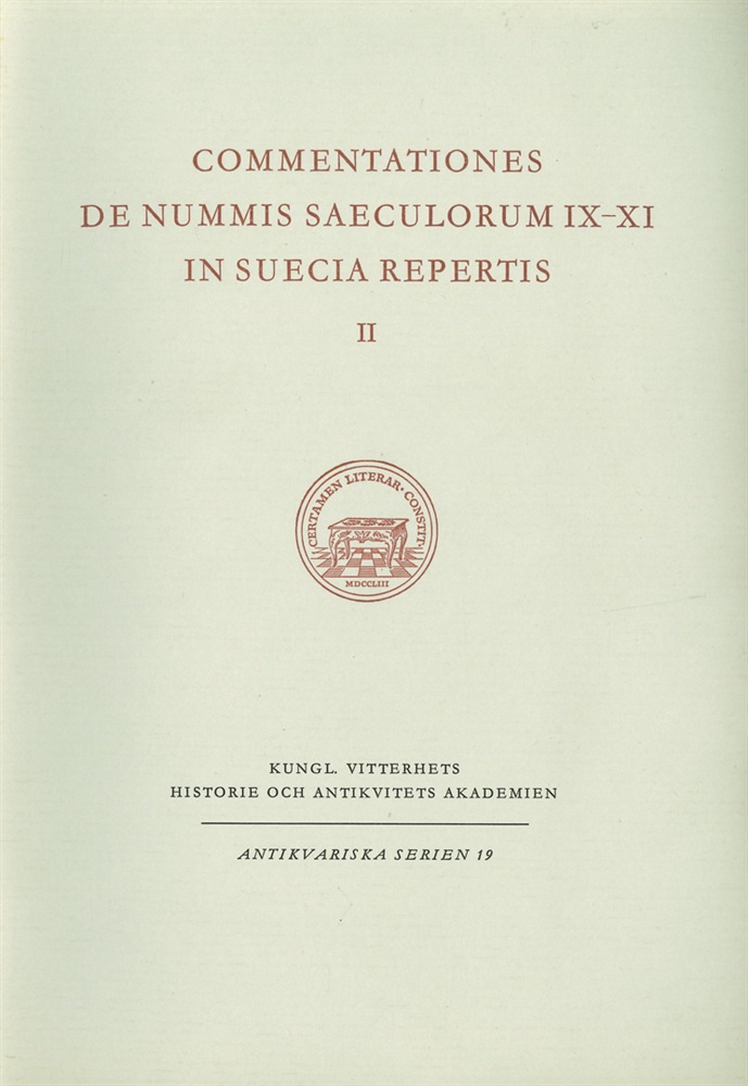 Commentationes de Nummis Saeculorum IX-XI in Suecia Repertis. Nova Series