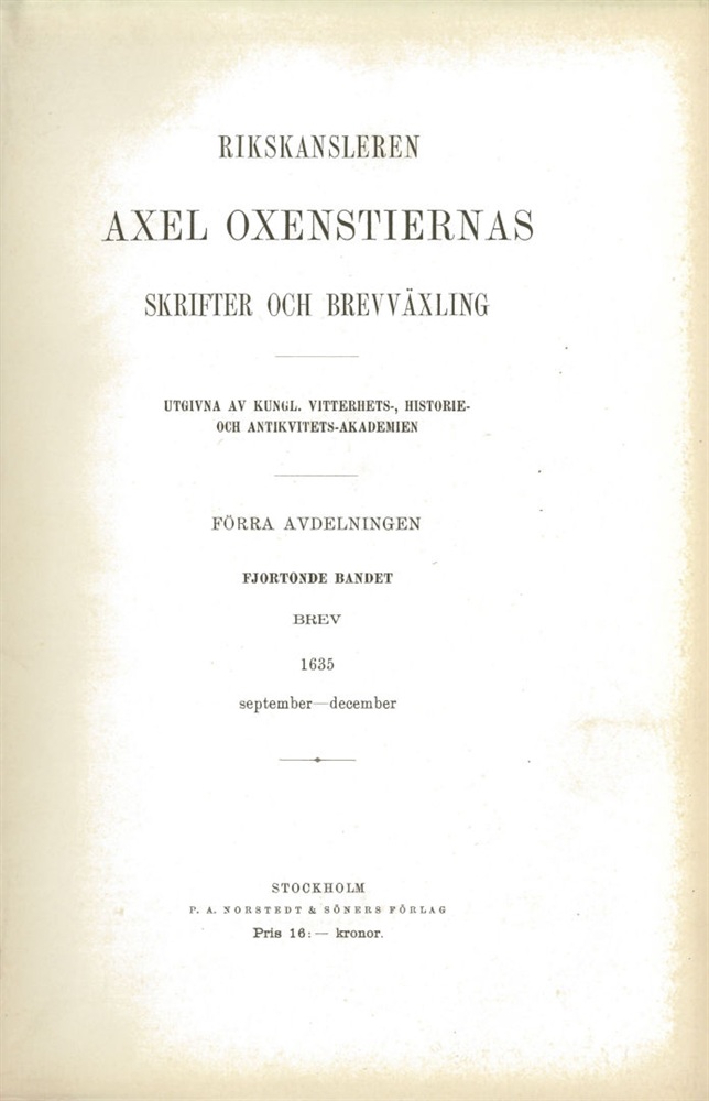 Rikskanslern Axel Oxenstiernas skrifter och brevväxling. Avd. 1